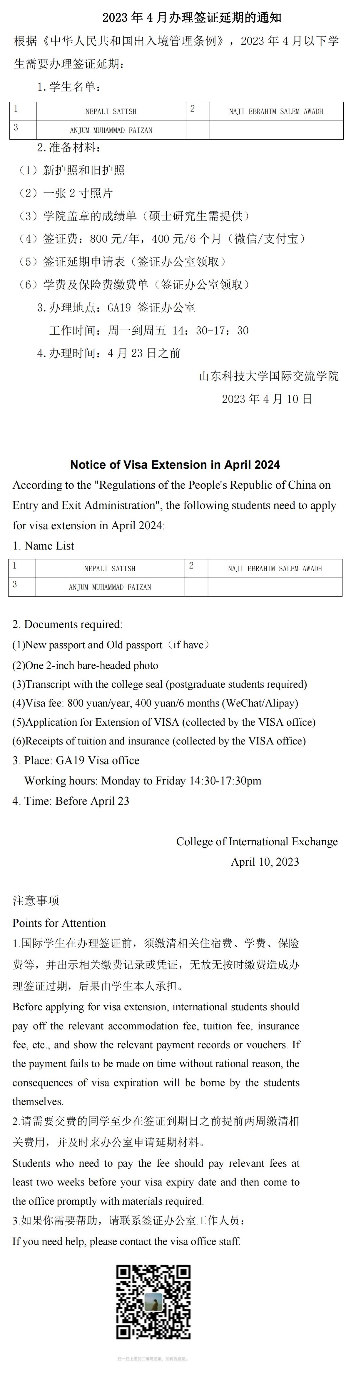 Notice of Visa Extension in April 2024