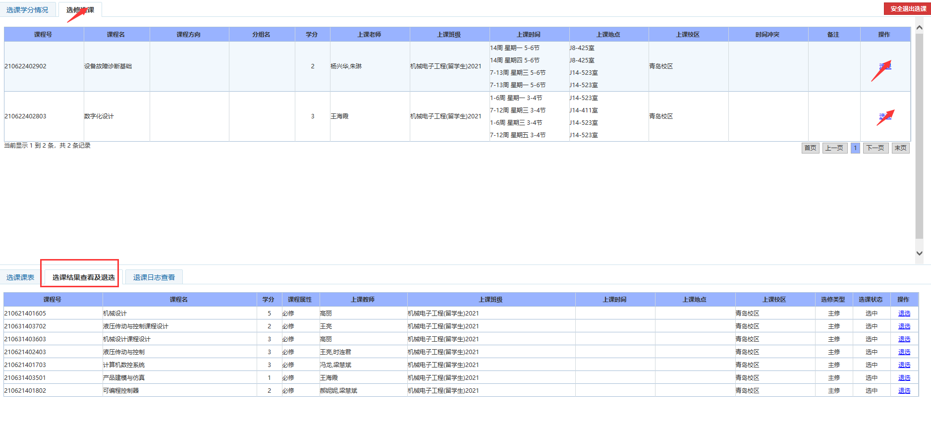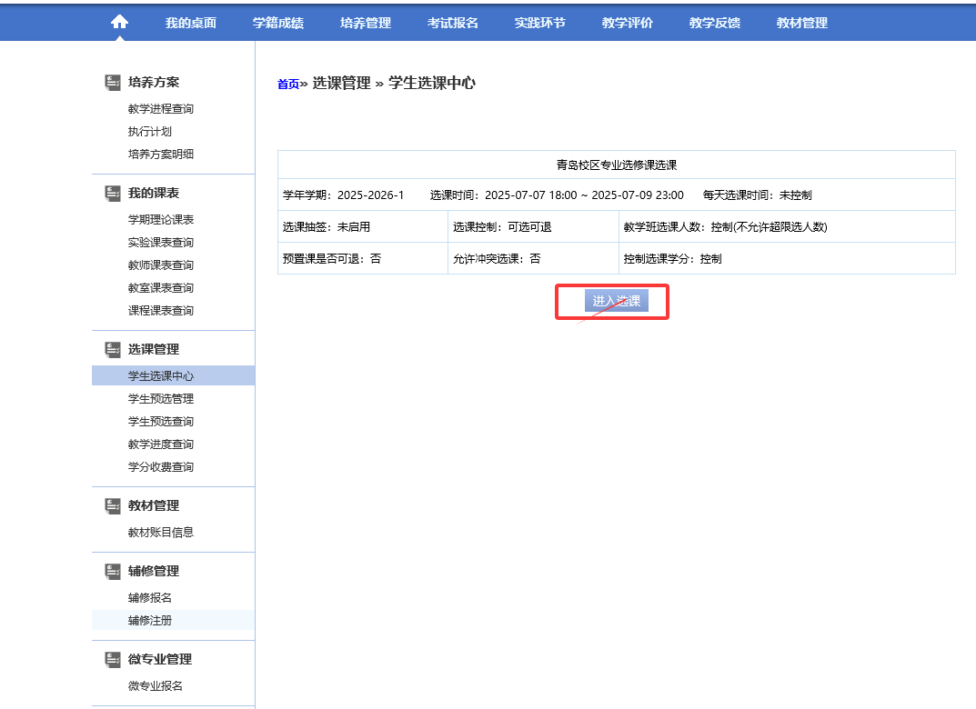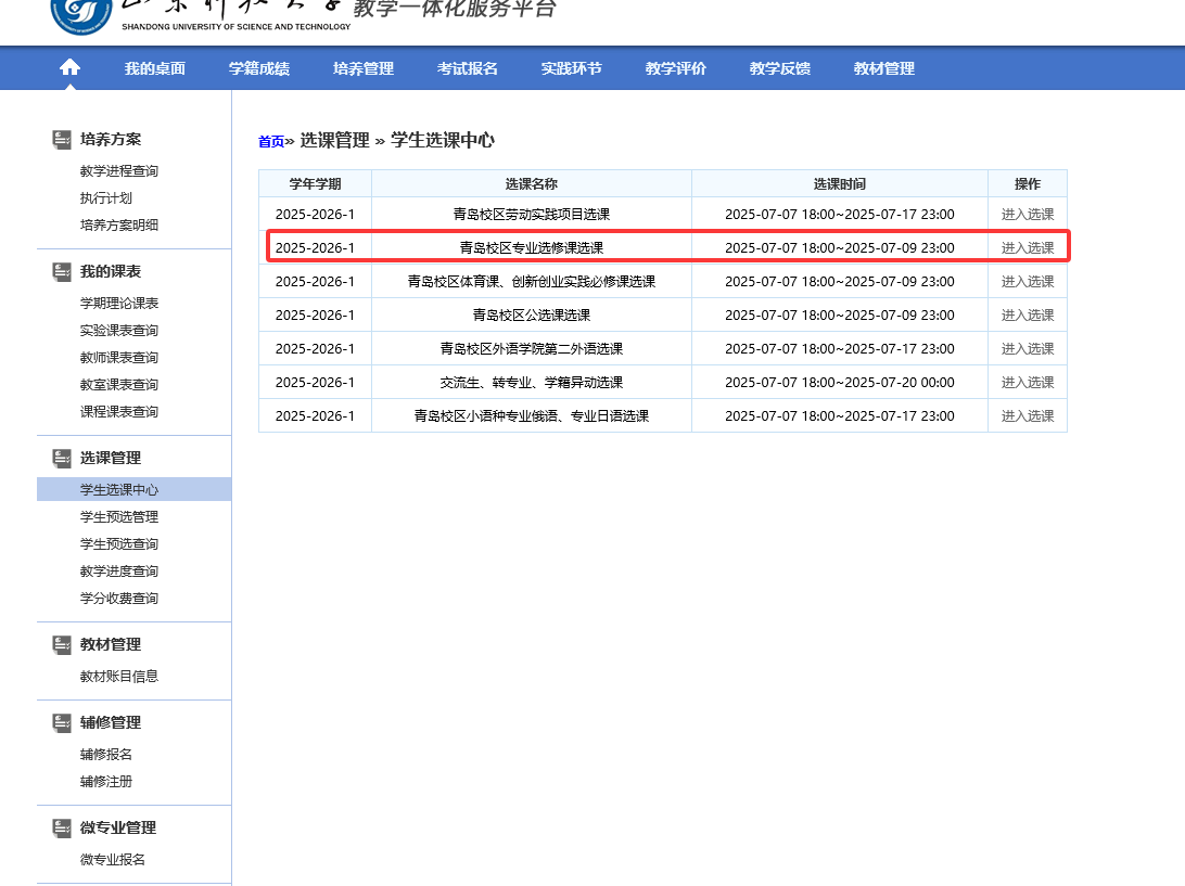 Then chooseSpecializedElective Courses“青岛校区专业选修课选课”