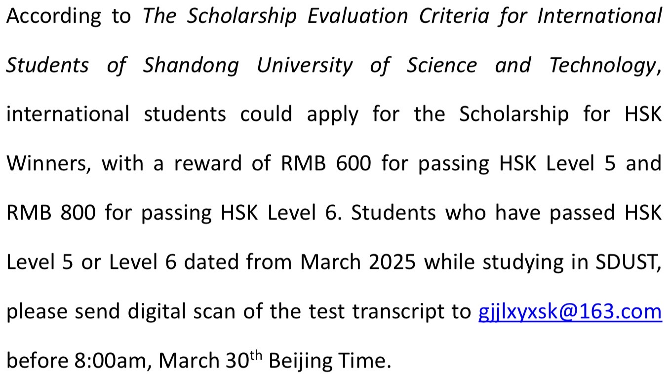 Notice on the Scholarship for HSK Winners